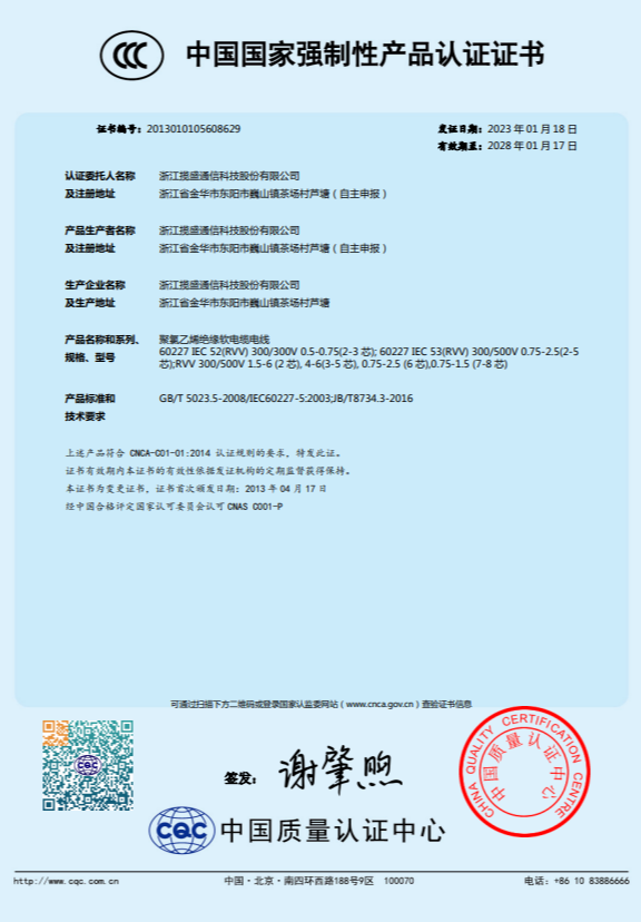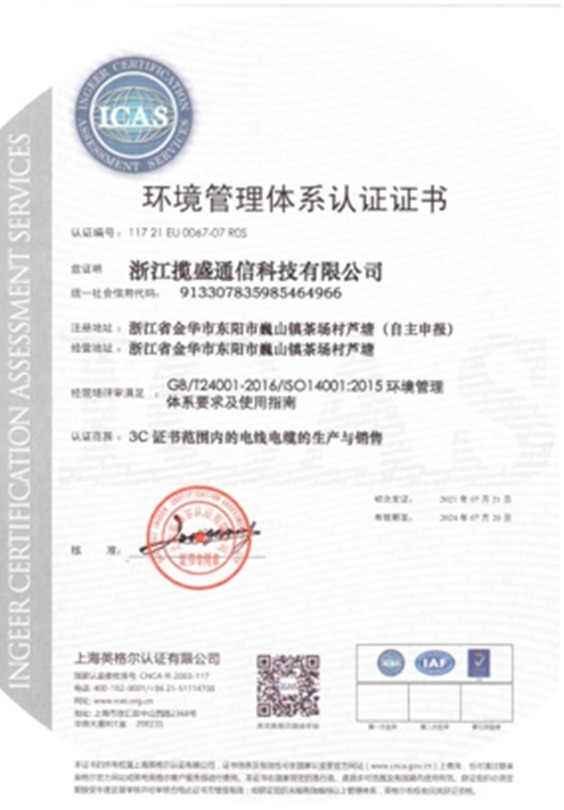 公司目前已通過3C強(qiáng)制性認(rèn)證、ISO9001質(zhì)量管理體系認(rèn)證、ISO14001環(huán)境管理體系認(rèn)證、ISO45001職業(yè)健康安全管理體系認(rèn)證、五星售后服務(wù)體系認(rèn)證、歐盟市場(chǎng)CE認(rèn)證、ROHS、REACH、FCC等證書,2015年相繼榮獲綜合布線十大品牌和傳輸設(shè)備類(安防線纜)十大品牌稱號(hào),2016年榮獲浙江省信用示范企業(yè)稱號(hào),2017年獲得浙江省科技型中小企業(yè)、東陽市誠(chéng)信品牌和誠(chéng)信民營(yíng)企業(yè)稱號(hào),2019年成為國(guó)家高新技術(shù)企業(yè)。