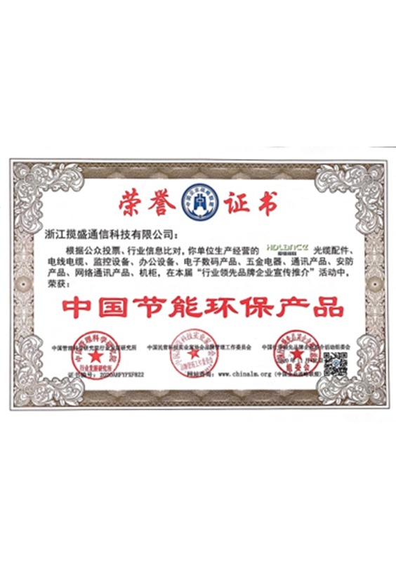 公司目前已通過3C強(qiáng)制性認(rèn)證、ISO9001質(zhì)量管理體系認(rèn)證、ISO14001環(huán)境管理體系認(rèn)證、ISO45001職業(yè)健康安全管理體系認(rèn)證、五星售后服務(wù)體系認(rèn)證、歐盟市場(chǎng)CE認(rèn)證、ROHS、REACH、FCC等證書,2015年相繼榮獲綜合布線十大品牌和傳輸設(shè)備類(安防線纜)十大品牌稱號(hào),2016年榮獲浙江省信用示范企業(yè)稱號(hào),2017年獲得浙江省科技型中小企業(yè)、東陽市誠(chéng)信品牌和誠(chéng)信民營(yíng)企業(yè)稱號(hào),2019年成為國(guó)家高新技術(shù)企業(yè)。